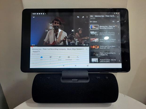 Priced at Rs 11,999, this 10-inch tablet comes with a Bluetooth speaker that also acts as the charging stand. When used separately, the tablet’s dual speakers with 5W drivers give a considerable output. Also, the speaker has a 2000mAh battery that lasts 4-5 hours on full charge.